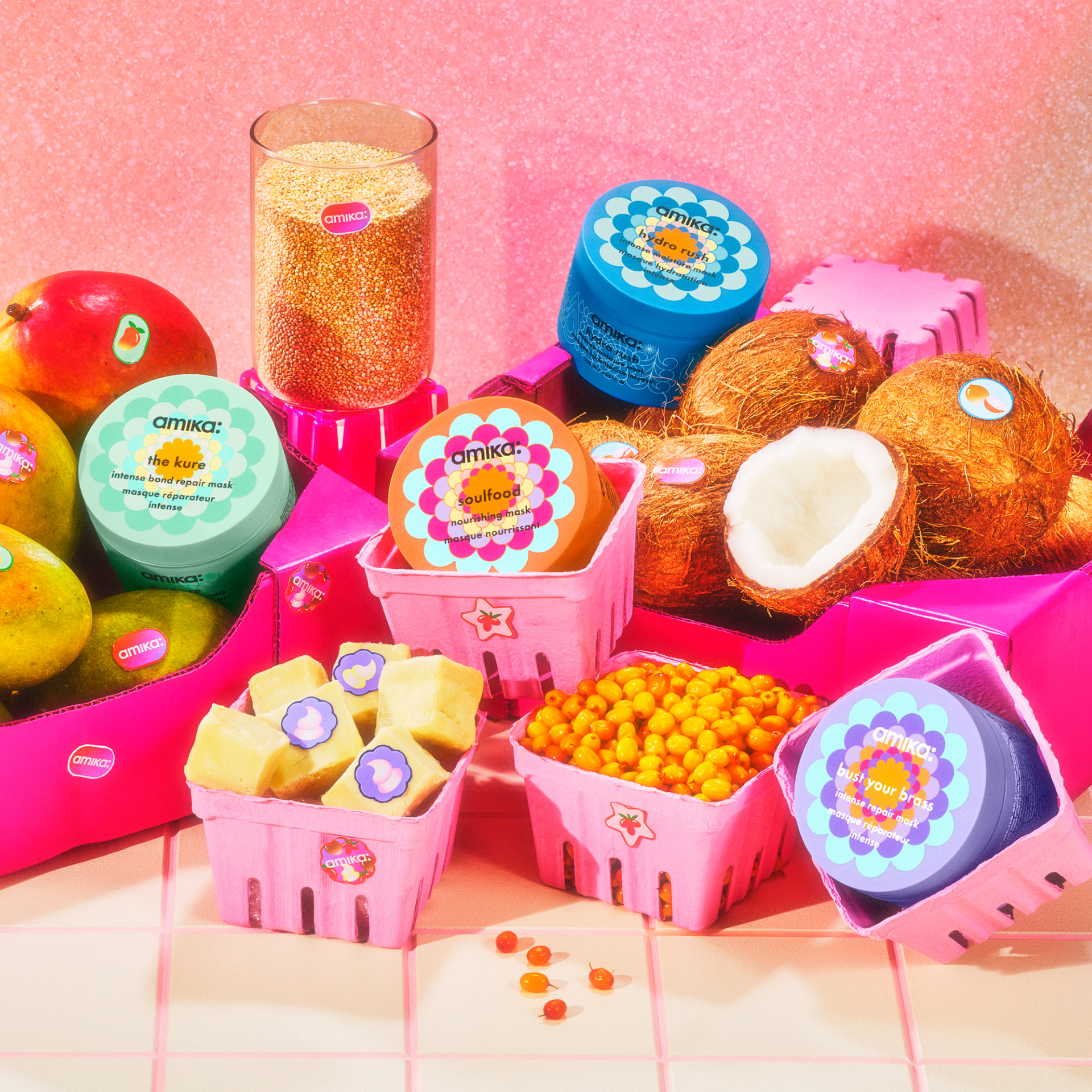 Assistant Art directed these images under Alexa de Paulis. Additionally, I created some fun fruit stickers showing amika's star ingredients, which were featured in one of the images.